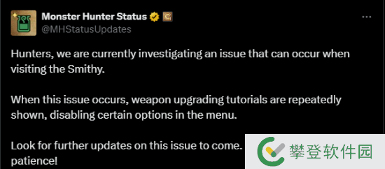 《怪物猎人荒野》再出问题!访问铁匠铺存在异常