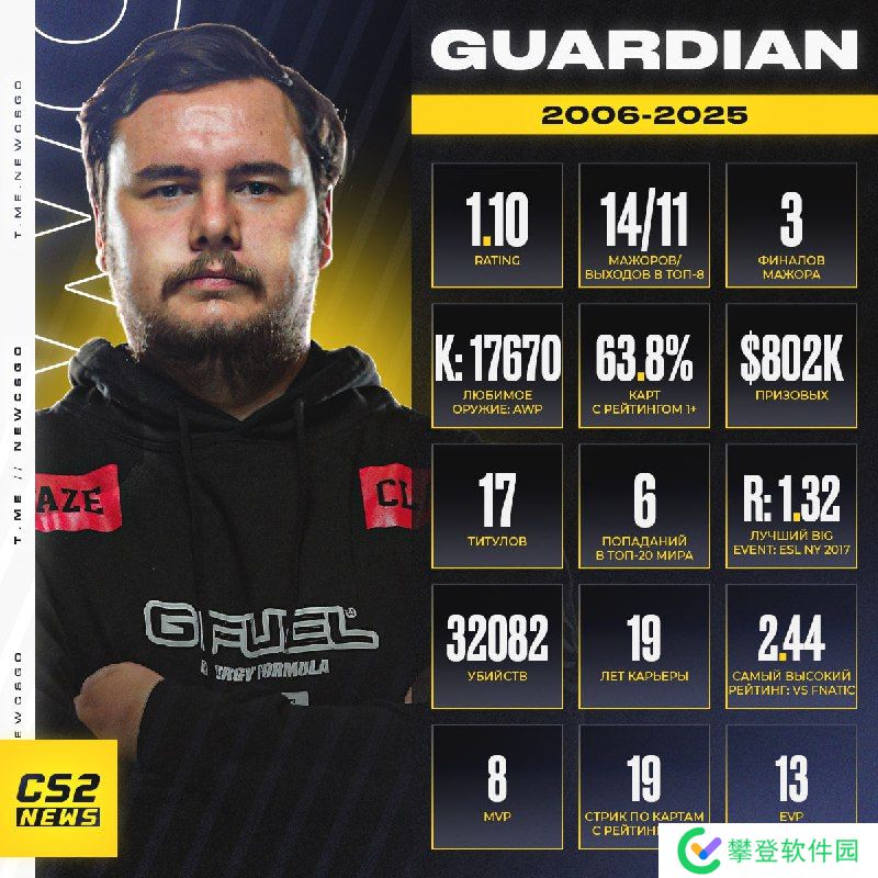 GuardiaN职业生涯数据一览:6次TOP20,8个MVP,1.10 rating