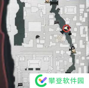 1、在圖中找到標注點,前往橋段中央尋找名為梅離茂的NPC,他會告訴玩家他遺失了一把雨傘。