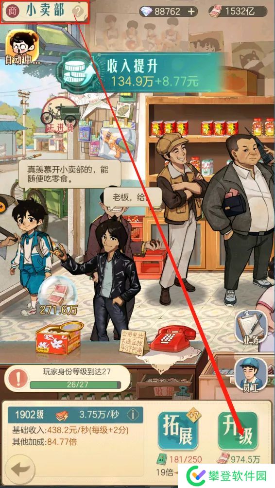 主要是通过钞票来实现店铺等级的提升。如第一点所说,可以优先升级早餐摊和小卖部,初始店铺升级成本小。