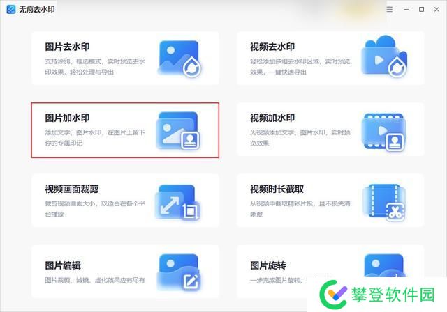 是的你们没有看错,既然这款软件可以帮助我们去水印,那它自然也能帮助我们为图片加上水印。而且它除了水印功能外,还有图片编辑、视频画面裁剪、图片旋转等多种功能。接下来我们就一起看看它的加水印操作吧。