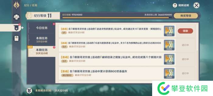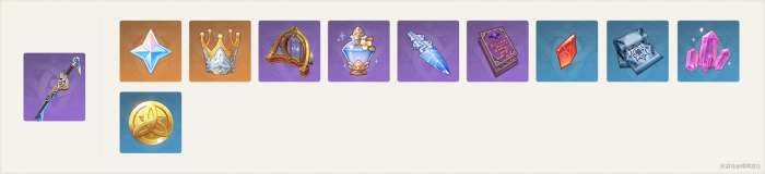 原石、限定满精四星单手剑、皇冠、角色天赋材料与圣遗物升级材料、摩拉、摆设等等。此次活动武器较为强力推荐大家优先获取噢。